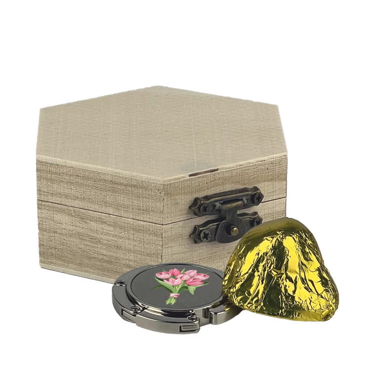 - 6 szögletű kapcsos fadoboz: Egy apró, de különleges formavilágú tároló, amely az ajándék elfogyasztása után is a lakás dísze vagy ékszertartó maradhat.