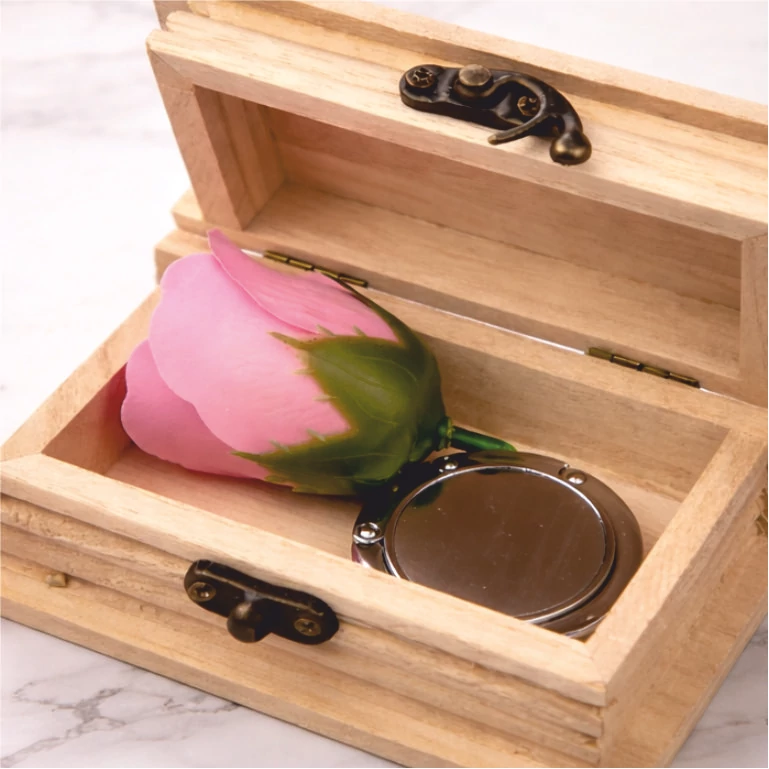 - Kapcsos fadoboz: Egy tartós és esztétikus, természetes fából készült dobozka, amely az ajándék átadása után is hasznos tárolója lehet kedvenc apróságaidnak.