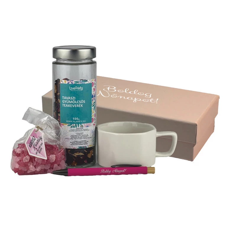 Ez az összeállítás a nyugodt teázás élményét és a professzionális megjelenést ötvözi. A Zengő csomag púderrózsaszín tónusai és minőségi kiegészítői tökéletes egyensúlyt teremtenek a kényeztetés és a praktikum között.
